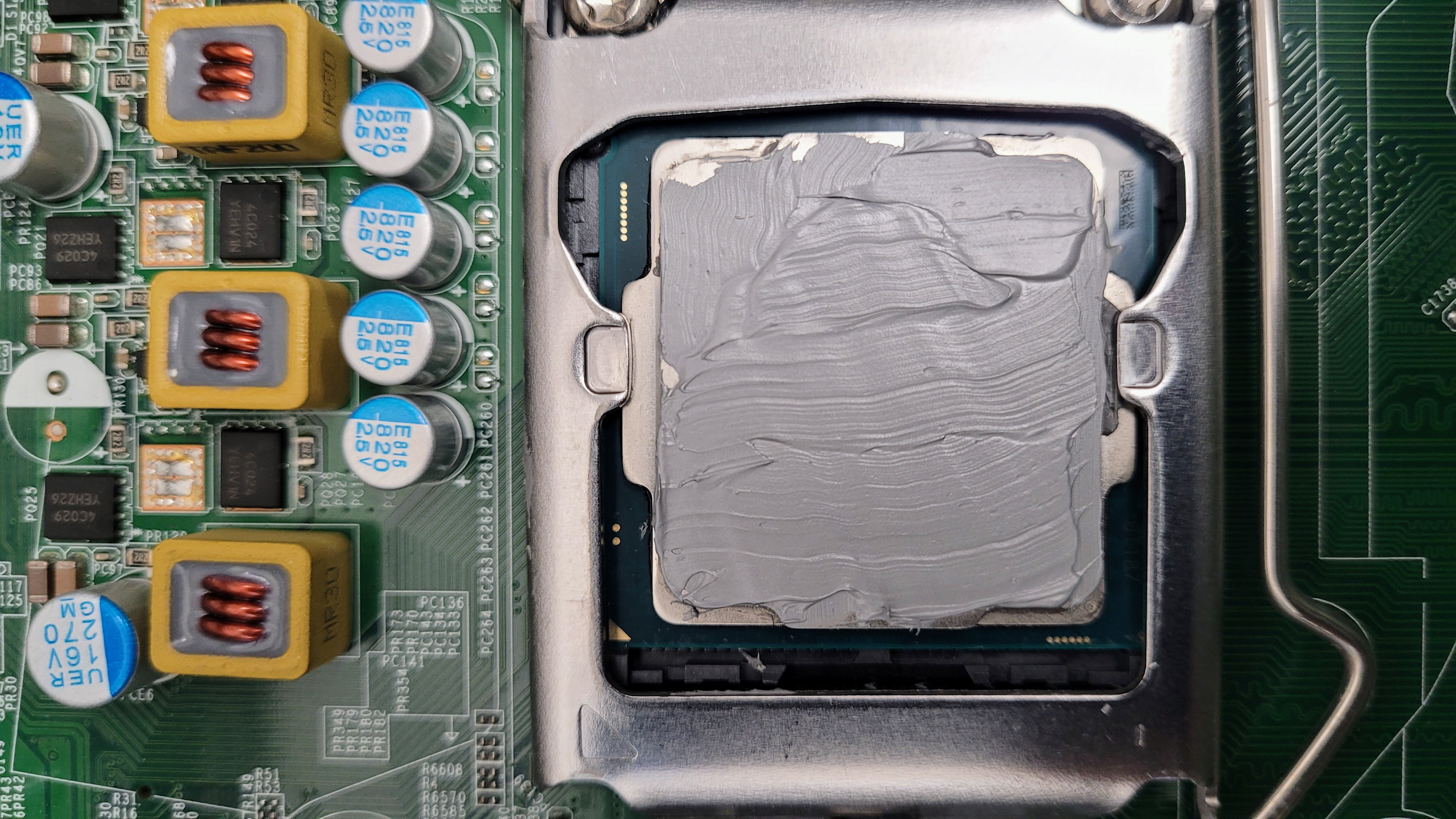 The photos below show a lot of thermal paste. Honestly, I used a dollop about the size of a small garden pea. In the photos, the thickness looks much greater than it did in the moment. Nevertheless, it looks like a lot.