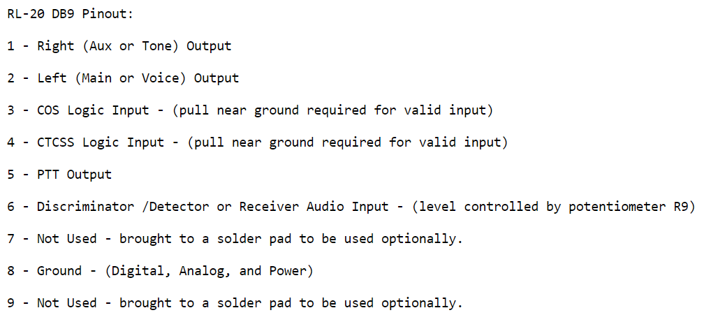 Microphone audio comes in through a 5K potentiometer to MAX9814 to RL-20 DB9 pin 6