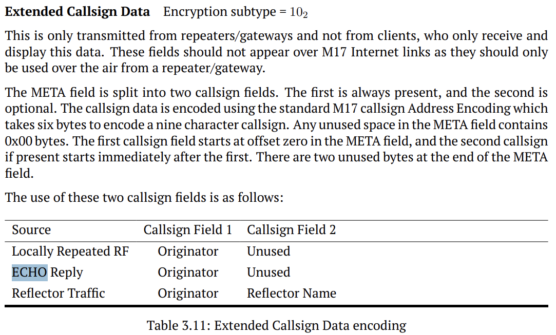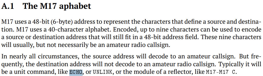 I started by looking at the M17 specifications at https://spec.m17project.org/ for information about the ECHO. The key aspects of ECHO in M17 are: