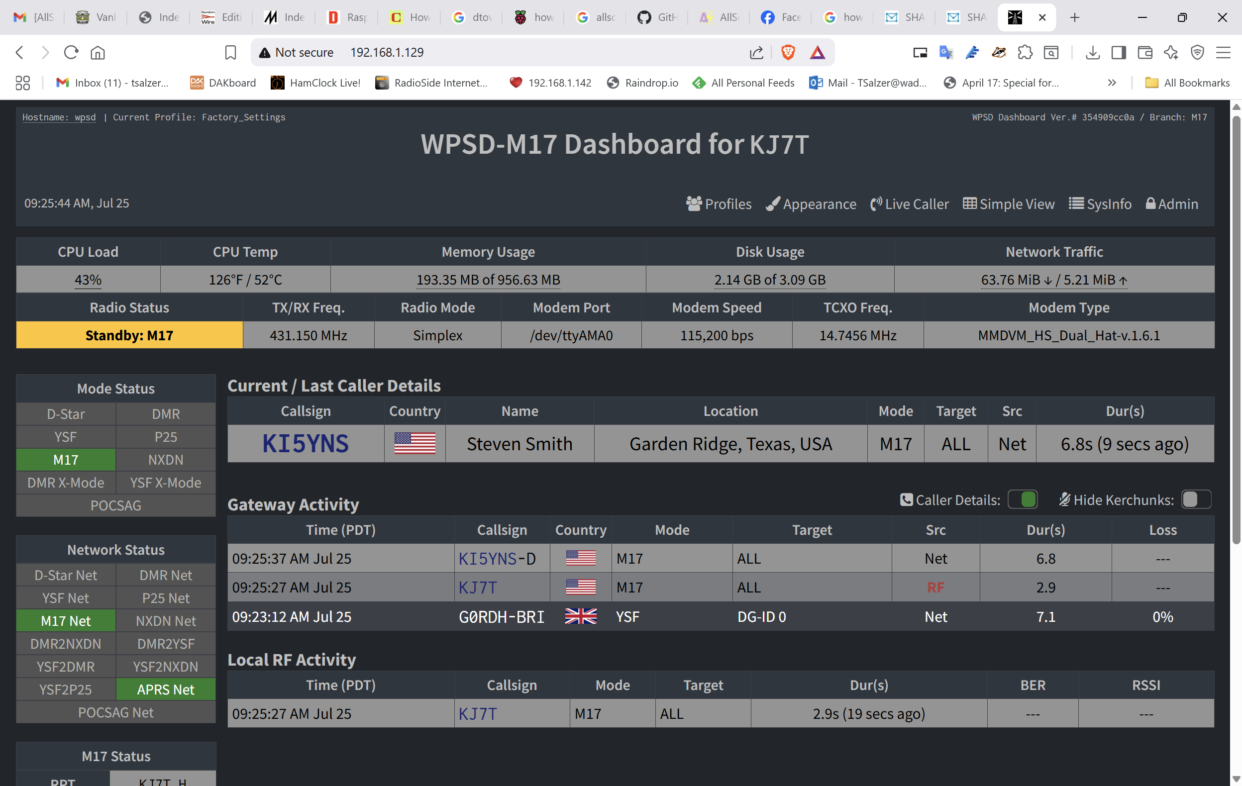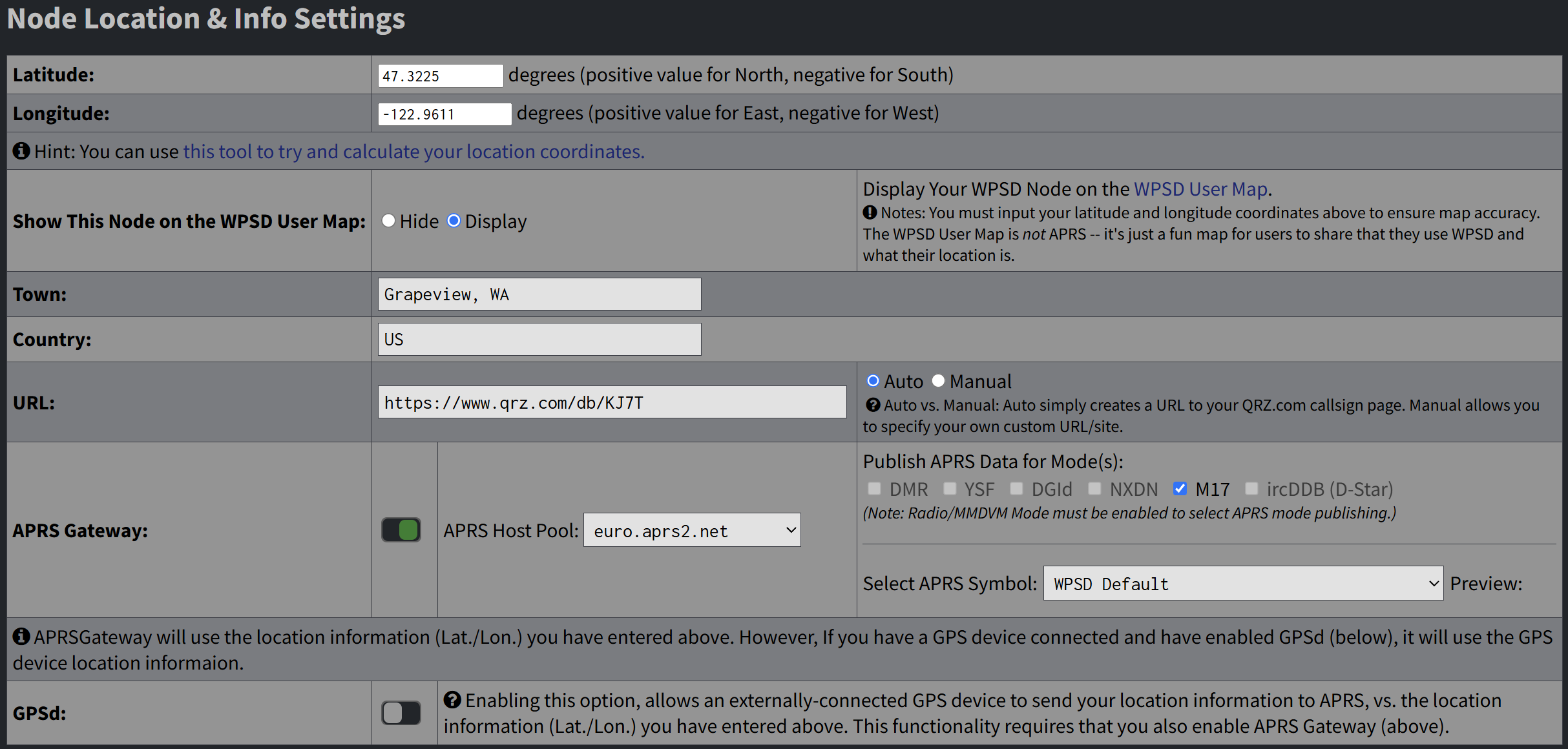 I had forgotten to change my APRS settings since the hotspot was last running in Oregon, so I updated my location, then set the hotspot to public my location for the M17 mode.