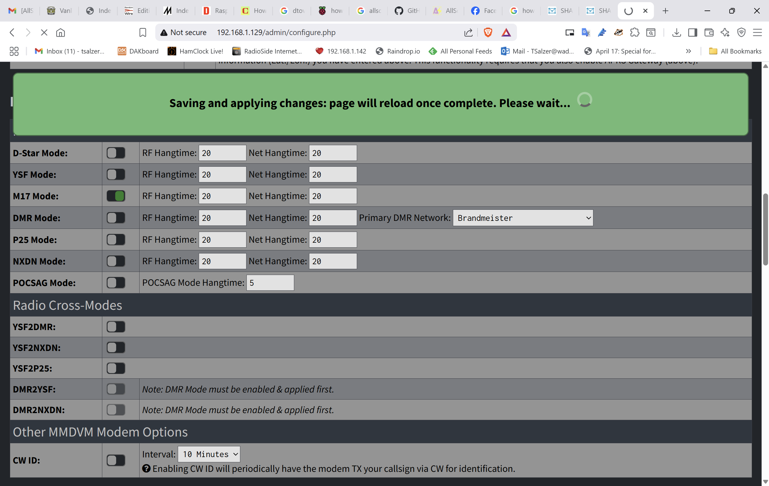 After that, I went into the configuration screen and turned off YSF Mode and turned on M17 Mode.