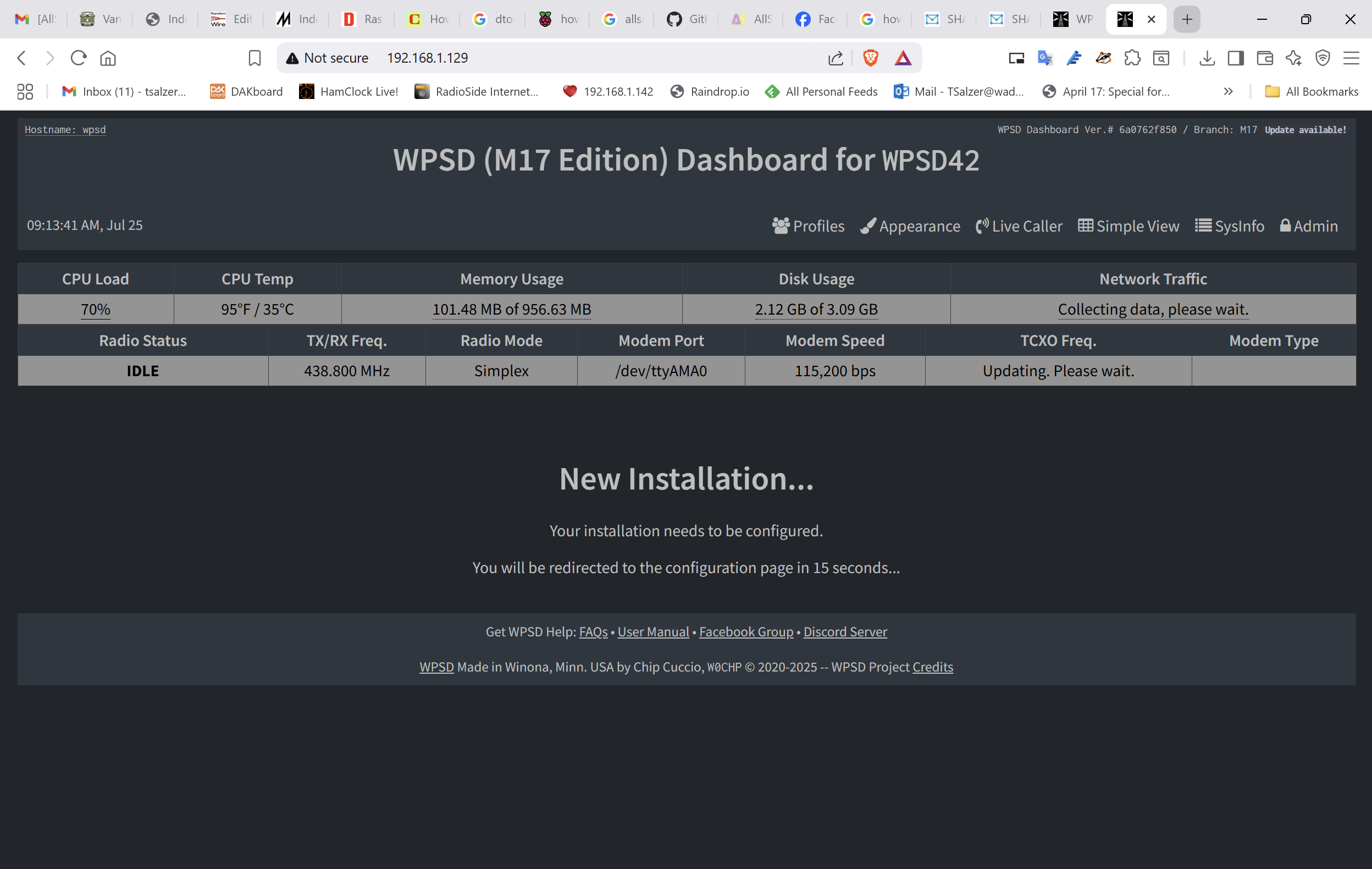 You want to see the WPSD “new installation” screen in order to proceed. It looks just like the original WPSD new installation screen except for one thing: this one says “Branch: M17” in the upper right corner!